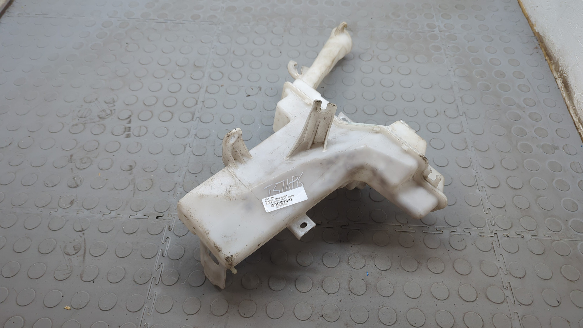 Состояние детали удовлетворительное. Белый цвет, царапины, потёртости. Вмятина в нижней части с правой стороны, небольшой надрыв локерной ленты с левой стороны, основные крепления целые. Ремонт вмятины и крепления