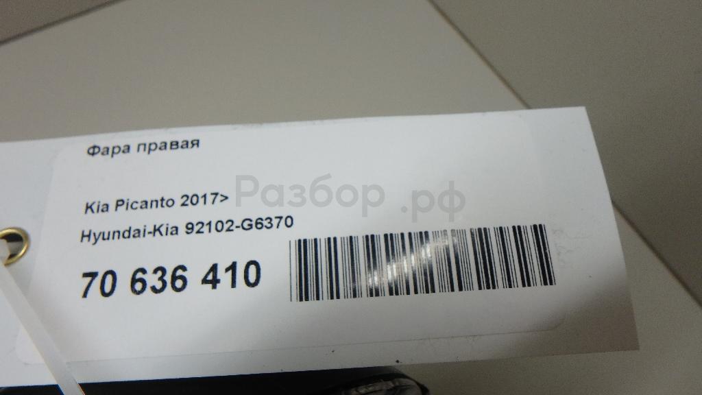 ПРАВЫЙ РУЛЬ ЛИНЗА НЕ КСЕНОН 92102G6370 Фара правая для Kia Picanto (JA) 2017>