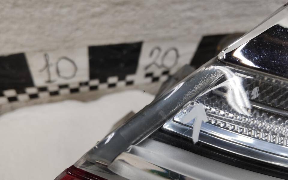 Состояние детали хорошее. Следы эксплуатации. Небольшой дефект в толще стекла по герметику верхней части, потемнение отражателя. Крепления целые. Ремонт не требуется