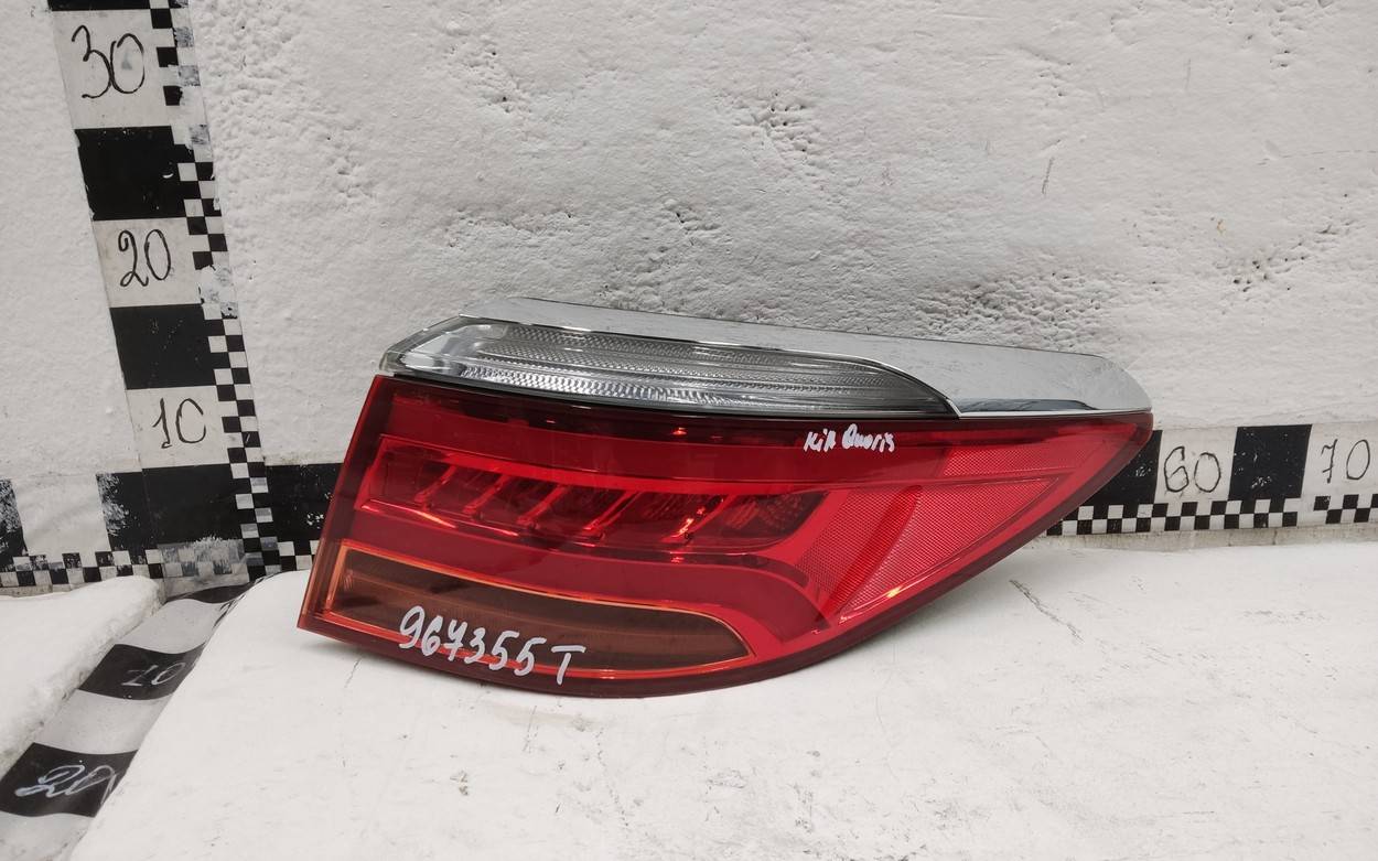 Состояние детали хорошее. Следы эксплуатации. Небольшой дефект в толще стекла по герметику верхней части, потемнение отражателя. Крепления целые. Ремонт не требуется Фонарь задний наружный правый для Kia Quoris (KH) 2012-2019
