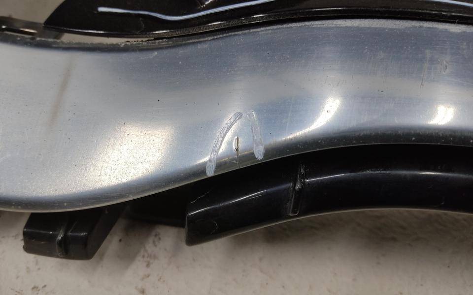 Состояние детали удовлетворительное. Тёмный хром. Скол, трещинки. Отсутствуют три крепления. Потребуется ремонт