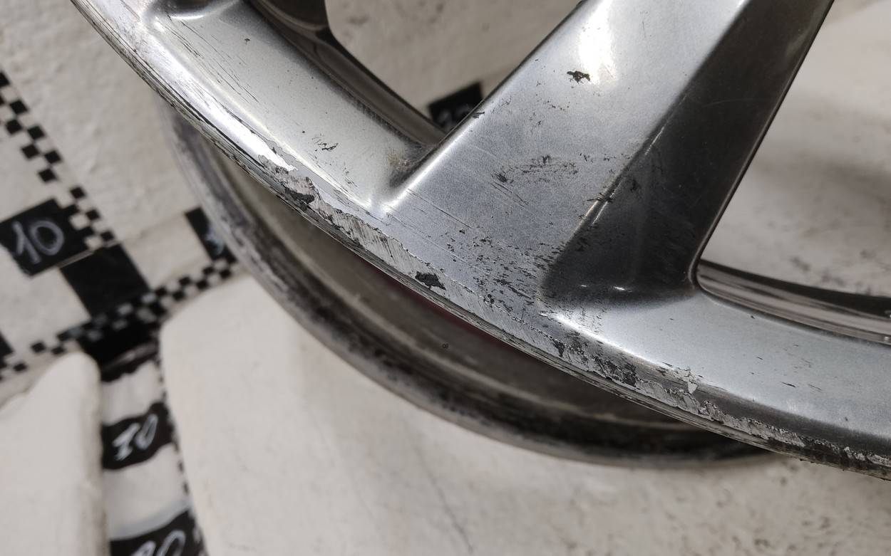 Состояние детали хорошее. Серого цвета, скол ЛКП. Царапинки по внешнему ободу. Потребуется незначительный ремонт
