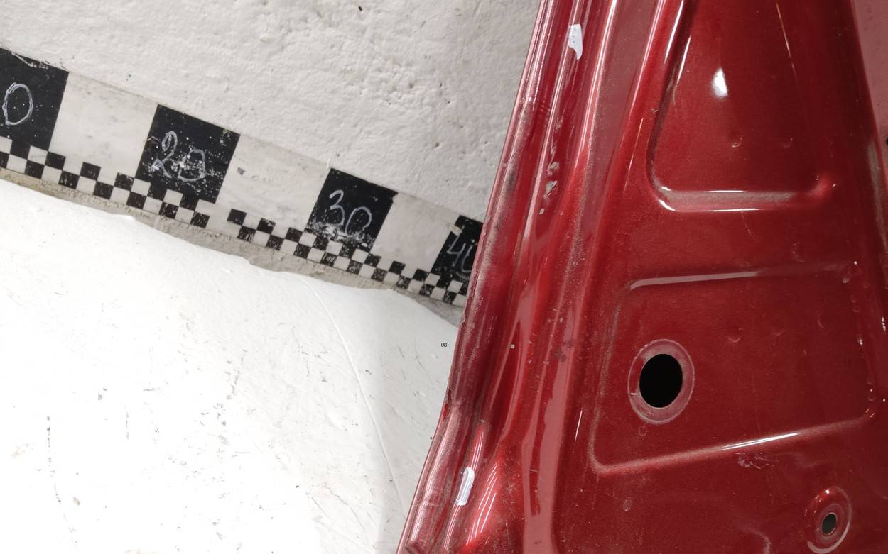 Состояние детали хорошее. Красного цвета, скол ЛКП. Небольшая вмятина. Потребуется ремонт