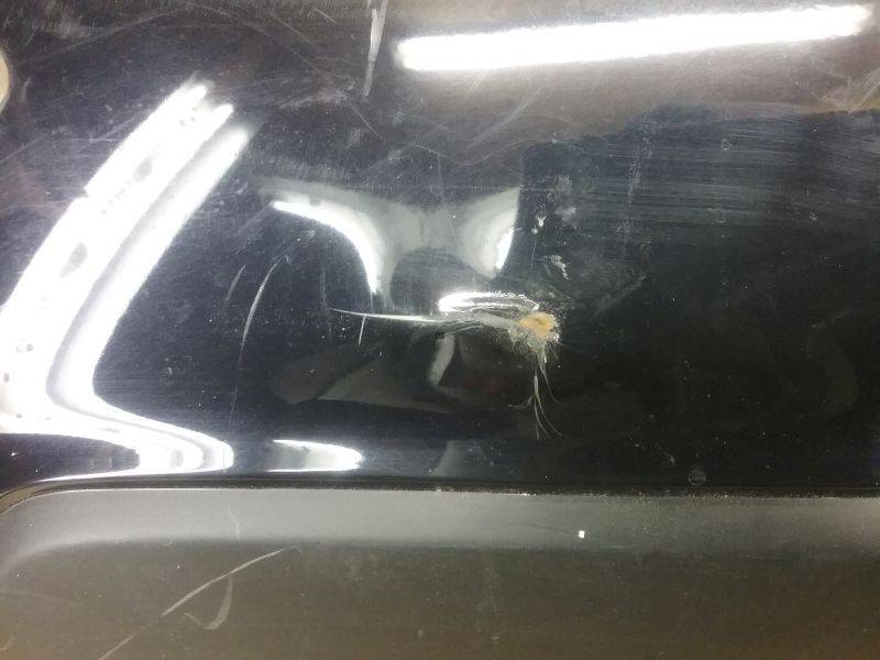 Состояние детали хорошее. Чёрного цвета, потёртости, царапинки. Притертость текстуры с правой стороны снизу, просверлены нештатные отверстия под парктроники, крепления целые. Потребуется ремонт и покраска