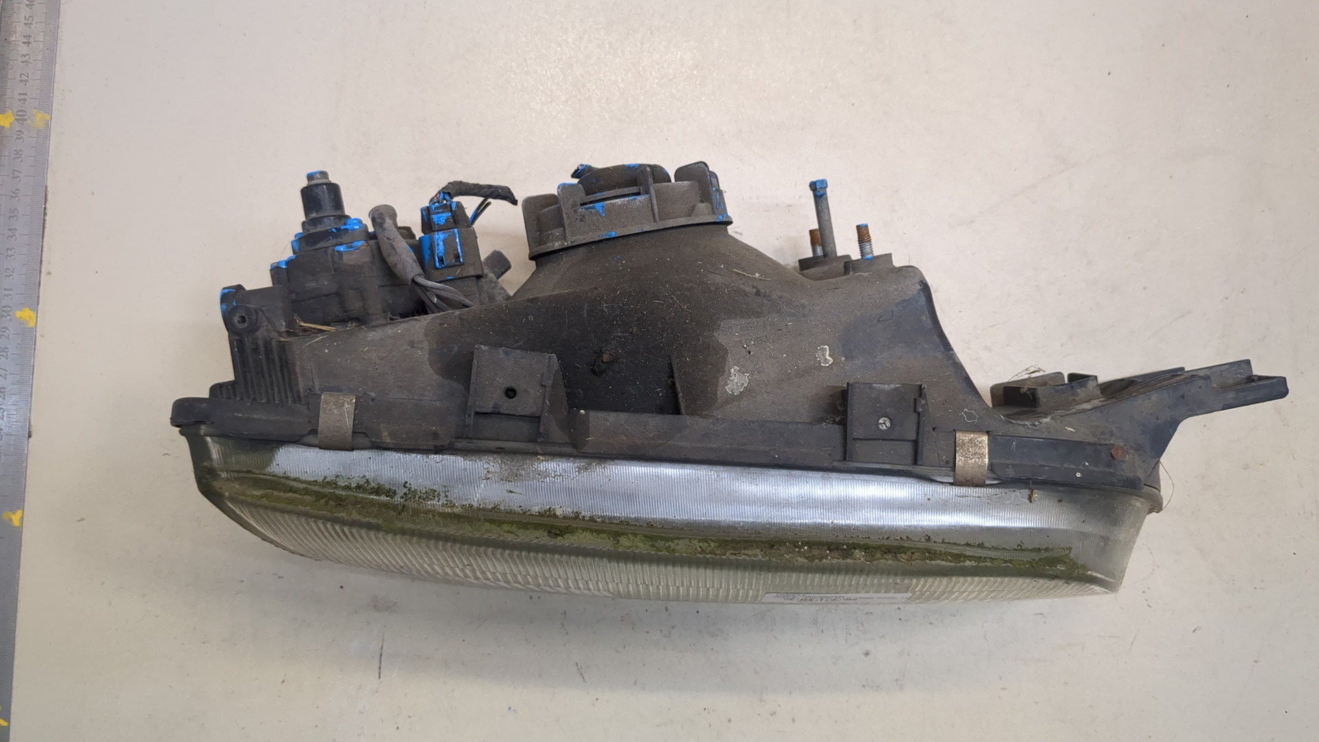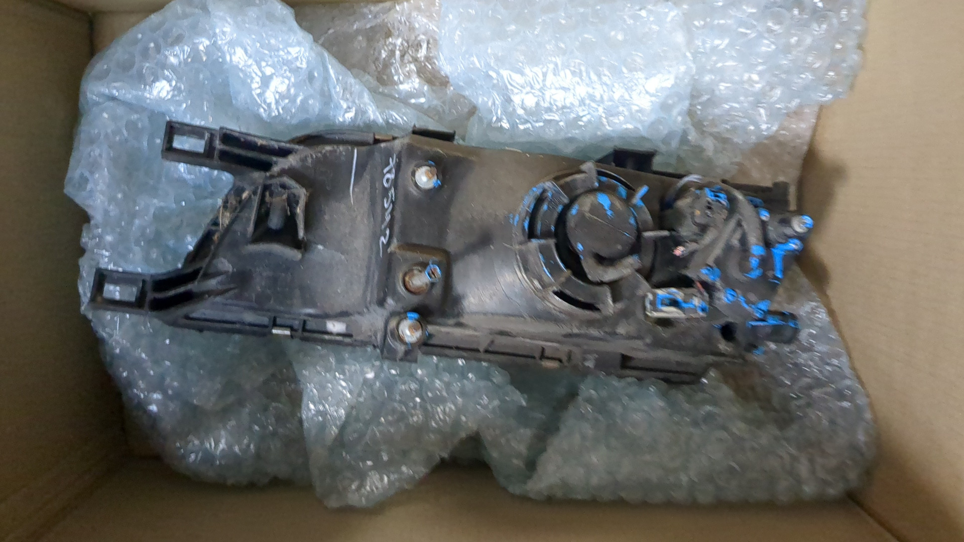 Состояние детали хорошее. Вмятинки, небольшое замятие сот, дефект пластика на фото. Крепления целые. Ремонт не требуется