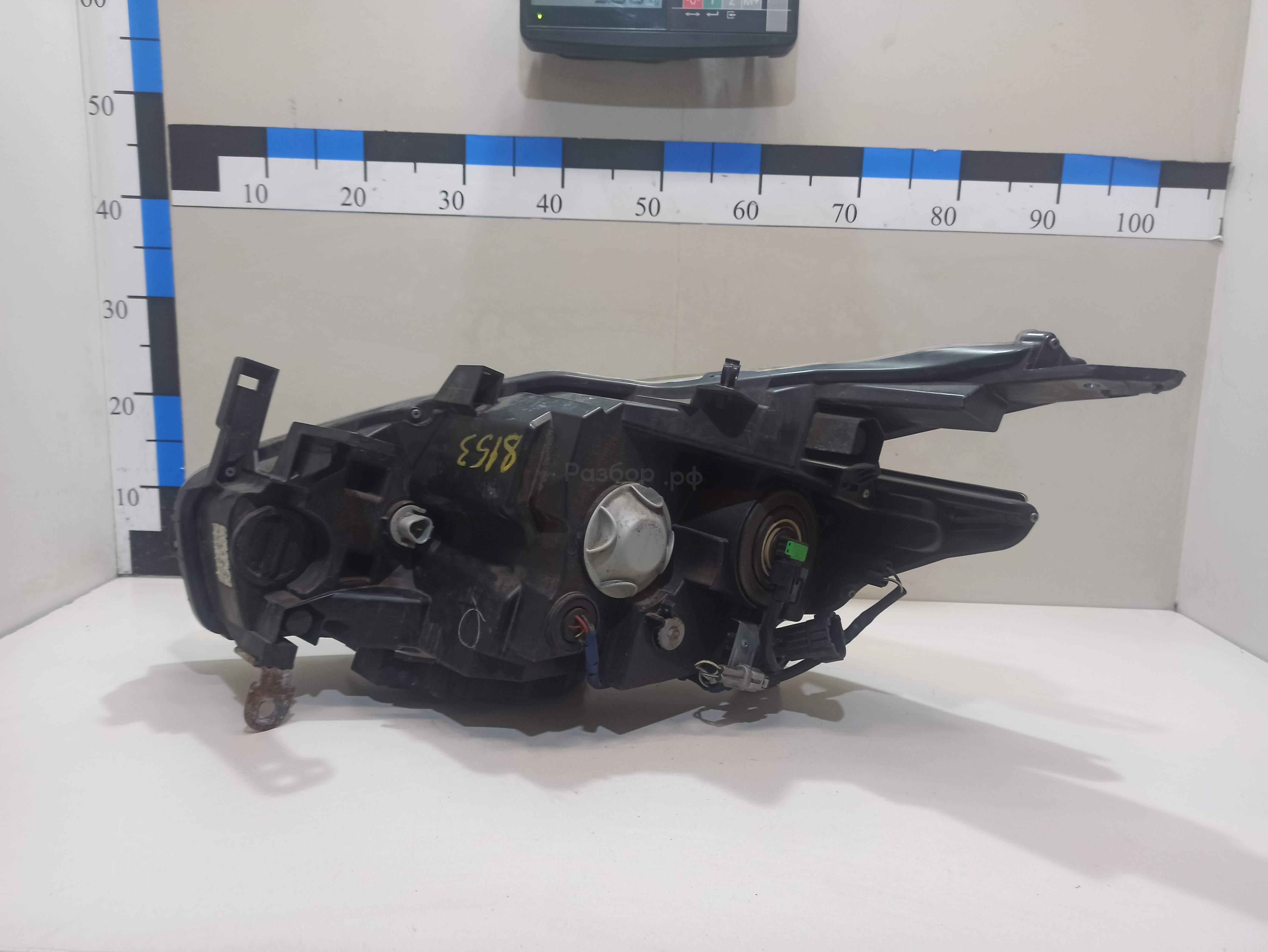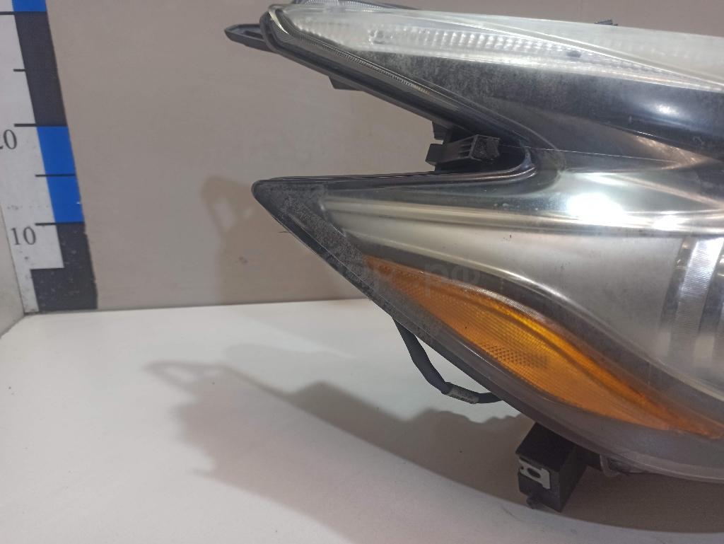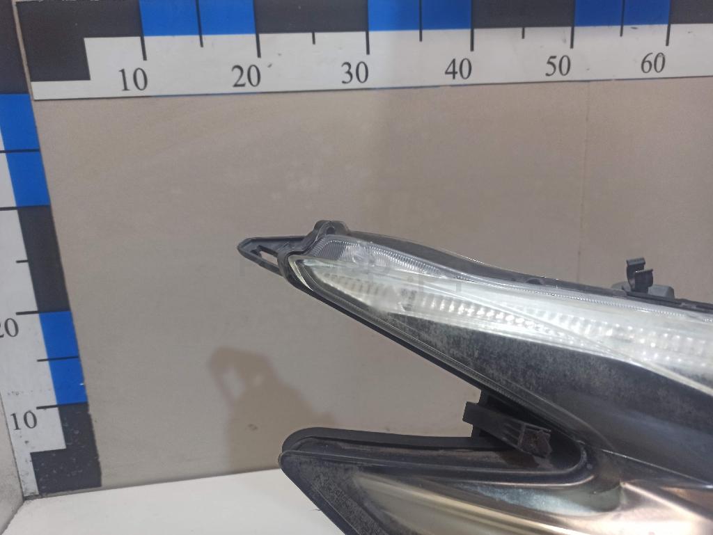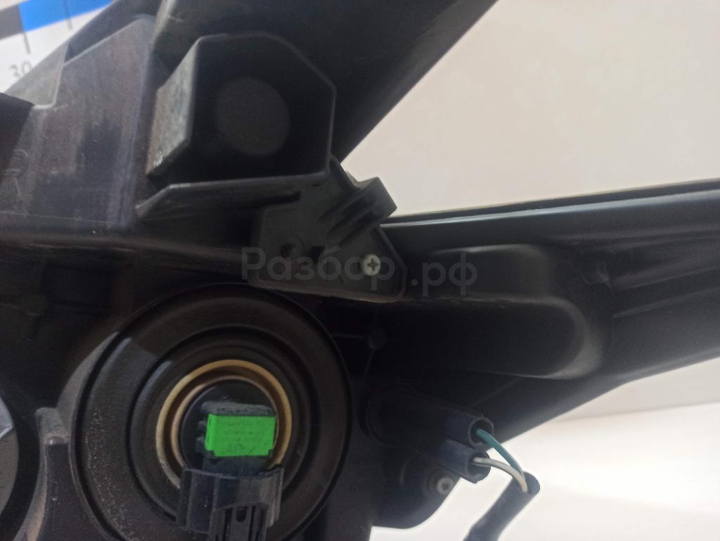 Состояние детали плохое. Стекло разбито, отсутствует фрагмент со стороны крыла. Трещины корпуса, отсутствуют фрагменты корпуса, сломаны крепления. На запчасти