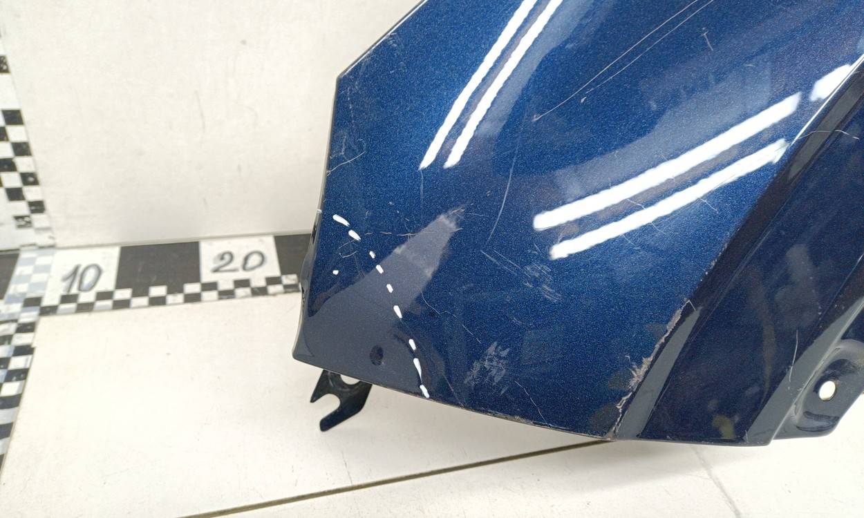 Состояние детали удовлетворительное. Синего цвета, потертости, царапины. Вмятинки в передней части. Потребуется ремонт и покраска