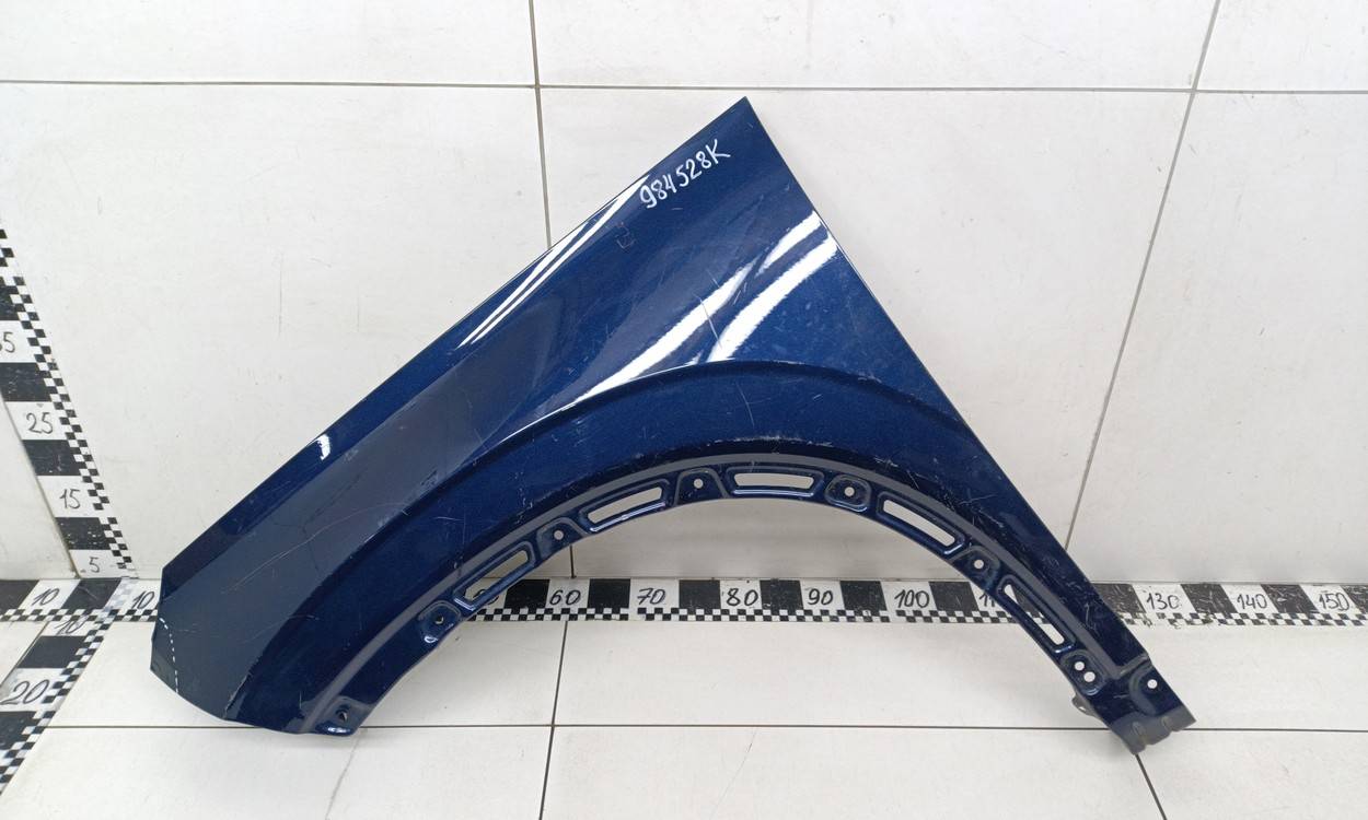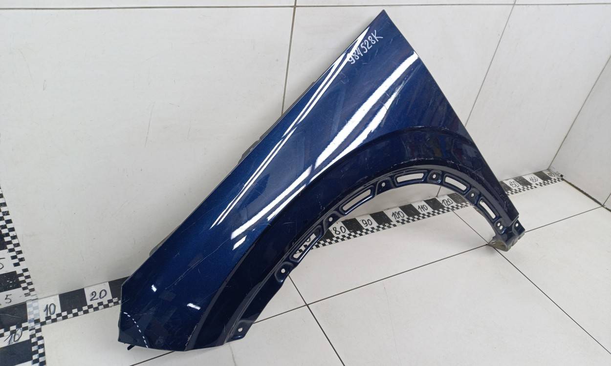 Состояние детали удовлетворительное. Синего цвета, потёртости, царапины. Вмятинка на кромке с правой стороны, небольшой дефект внутреннего каркаса в этом же месте с обратной стороны. Потребуется ремонт и покраска