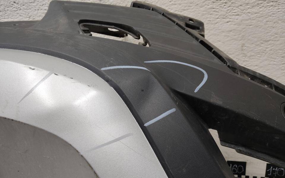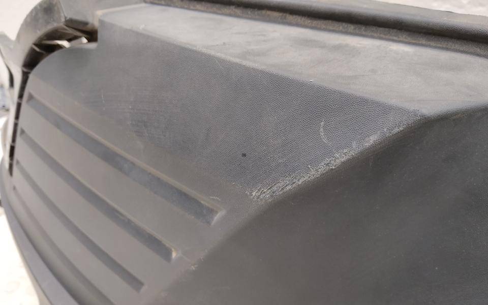 Состояние детали удовлетворительное. Текстура, со следами эксплуатации, потёртости. Трещинки на креплениях в нижней части и в районе правой ПТФ, основные крепления целые. Потребуется ремонт и покраска