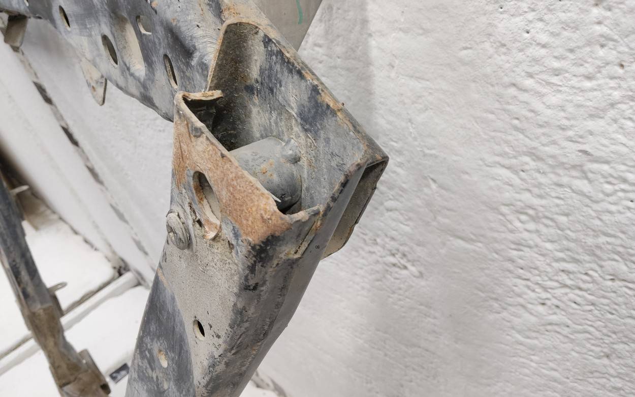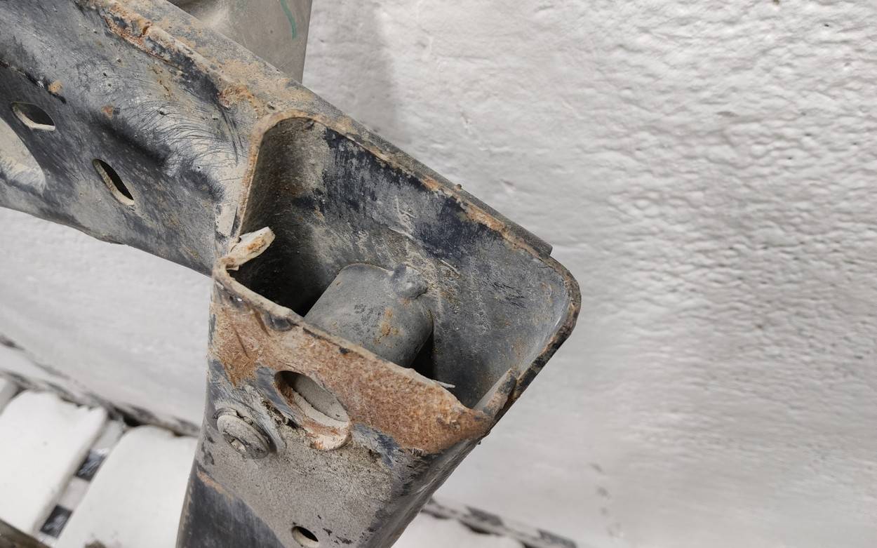 Состояние детали удовлетворительное. Коричневый цвет, потёртости. Вмятины в передней части, деформация переднего кронштейна. Ремонт вмятин