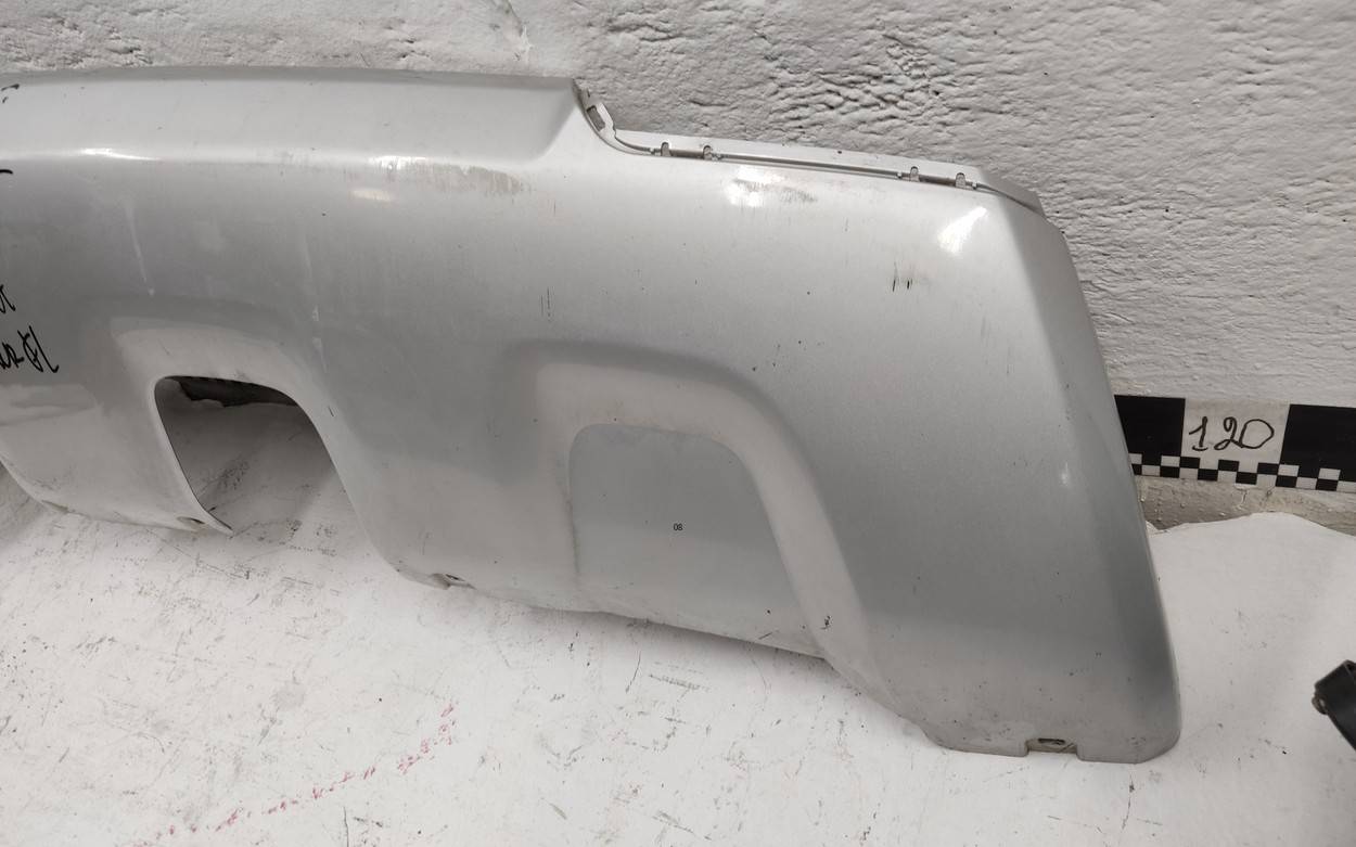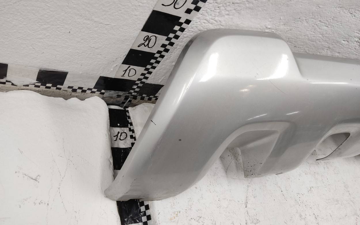 Бампер задний Renault Duster рестайл вмятина на полке дефект крепления слева серебристого цвета б/у оригинал. . .