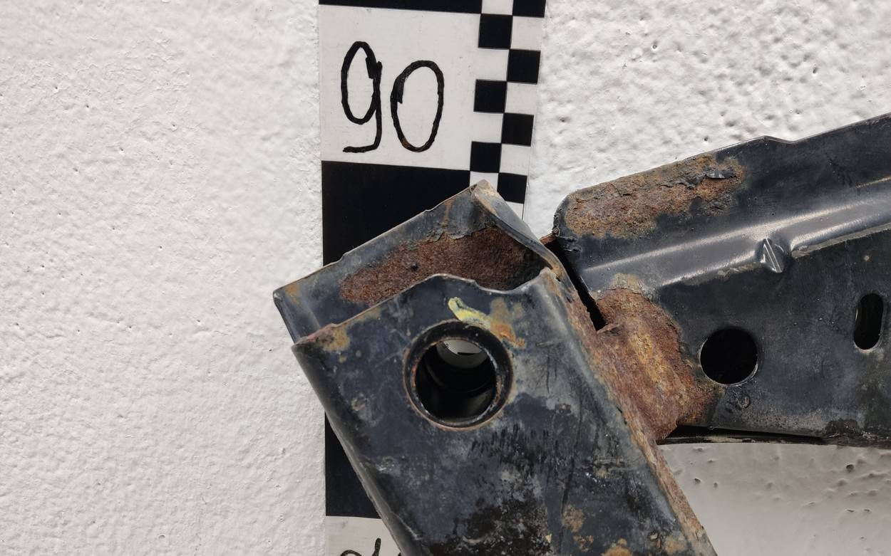 Состояние детали удовлетворительное. Коричневый цвет, потёртости. Вмятины в передней части, деформация переднего кронштейна. Ремонт вмятин