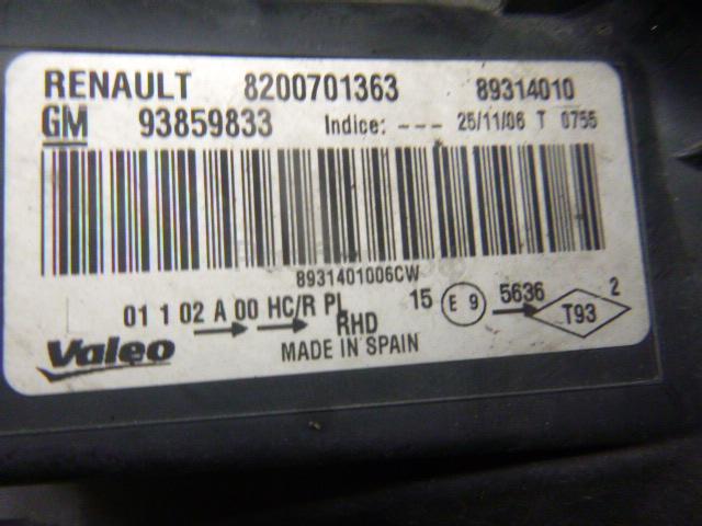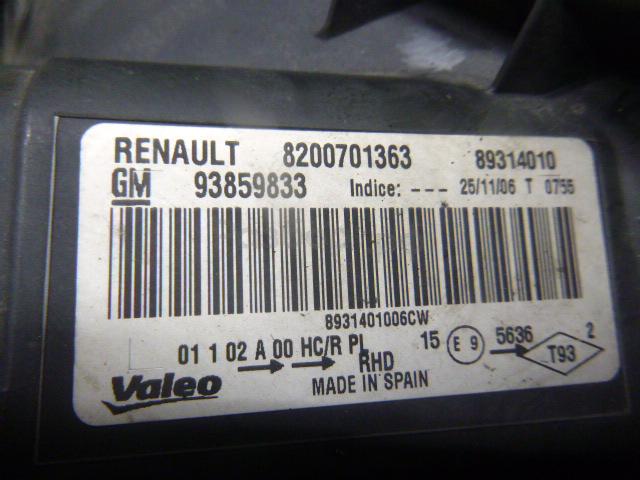ПОСЛЕ 2007 ГОДА ПРАВЫЙ РУЛЬ 8200701363 Фара левая для Renault Trafic (JL) 2001-2014