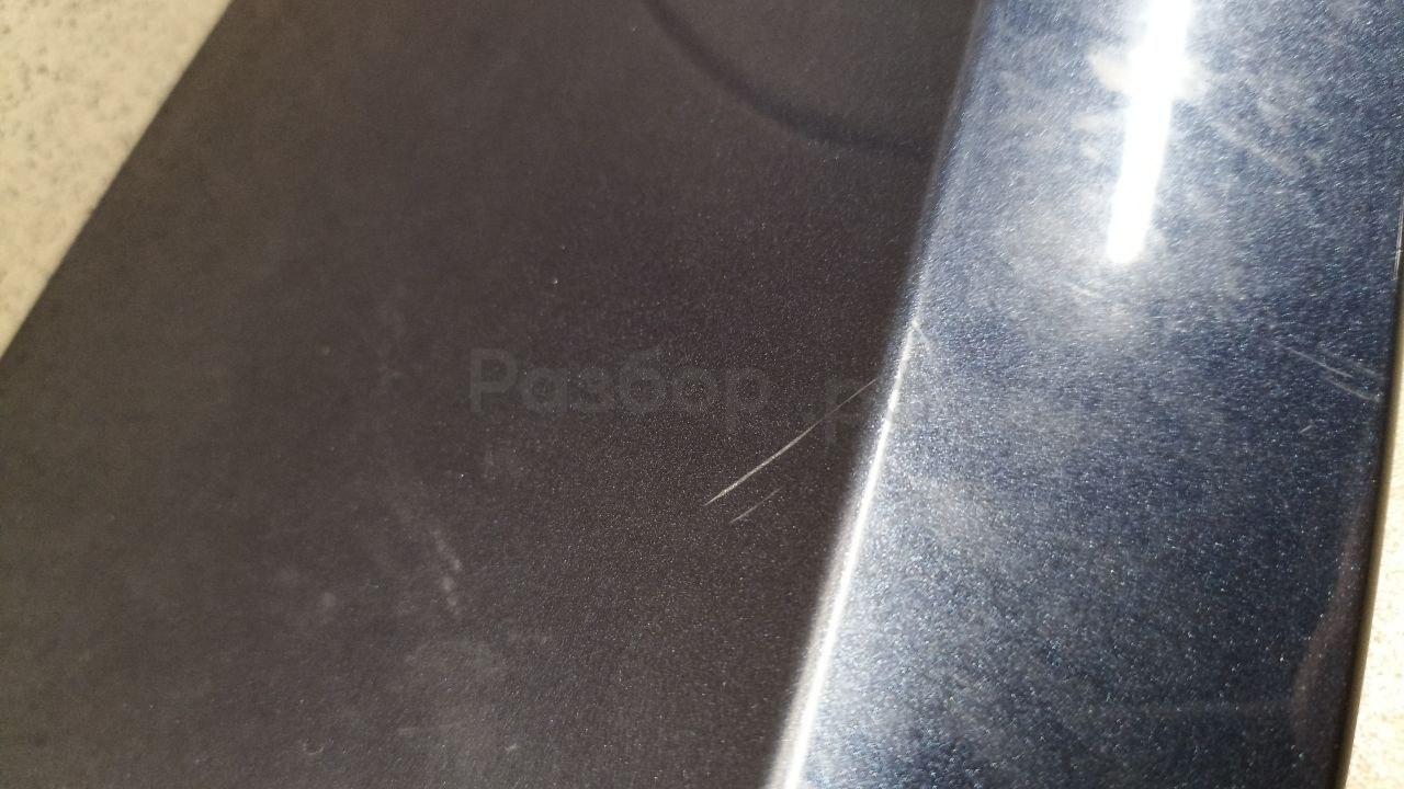 Состояние детали хорошее. Синего цвета, потёртости, царапины. Притёртость по задней кромке двери, царапина с вмятинкой в нижней части сзади. Потребуется ремонт и покраска