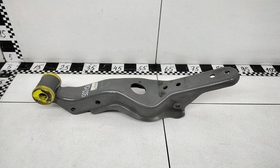 Состояние детали удовлетворительное. Металлический серого цвета, потёртости, следы коррозии. Небольшая деформация вместе куда вставляется амортизатор. Потребуется ремонт и покраска