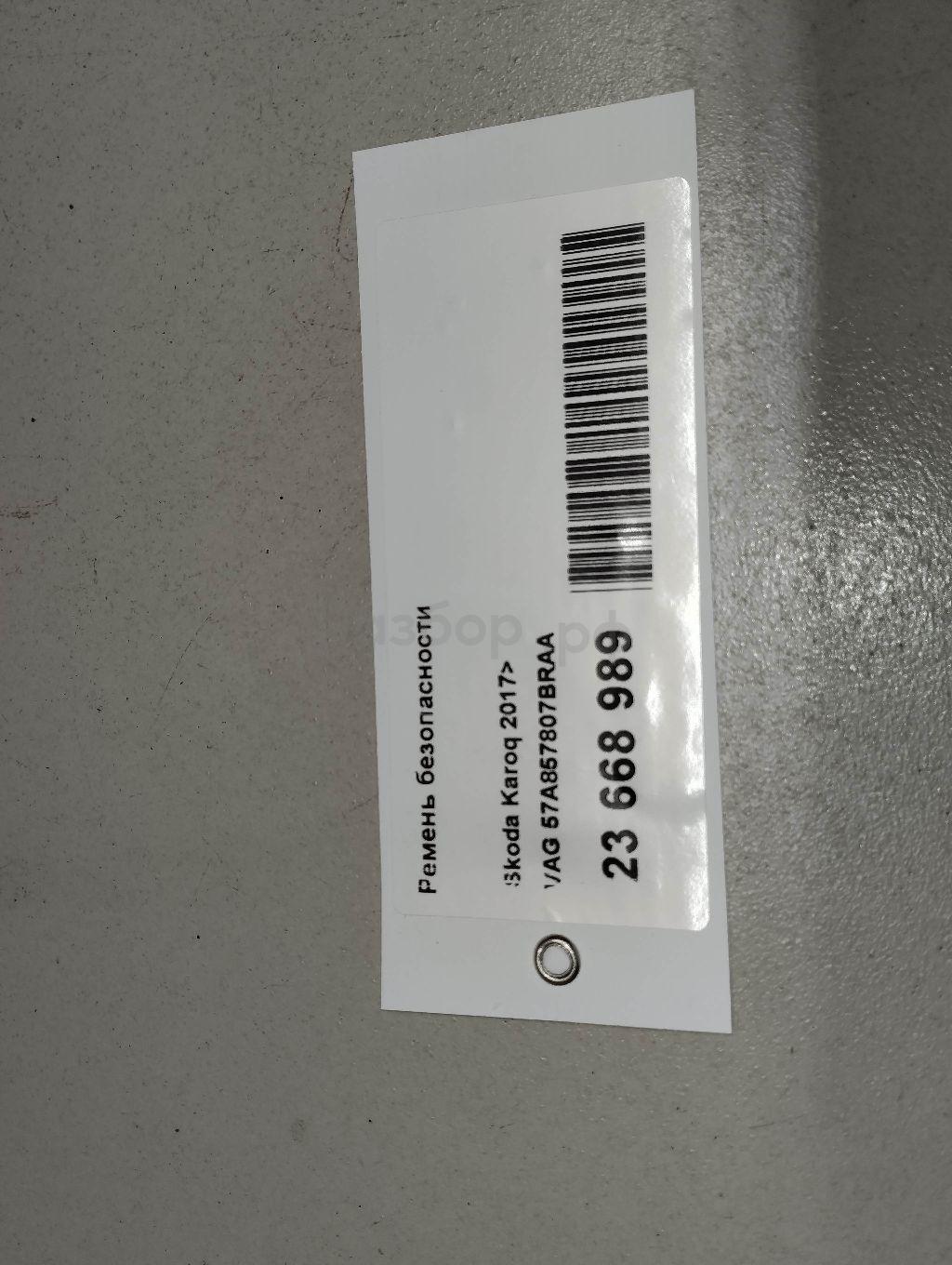 СРЕДНИЙ ЗАДНИЙ 57A857807B RAA Ремень безопасности для Skoda Karoq (NU7) 2017>