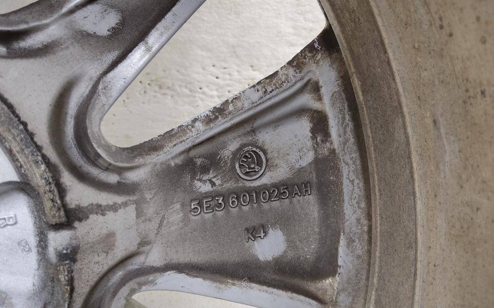 Состояние детали хорошее. Серебристого цвета. Небольшие потёртости. Под покраску Диск колесный литой легкий сплав для Skoda Octavia (A8) 2019>