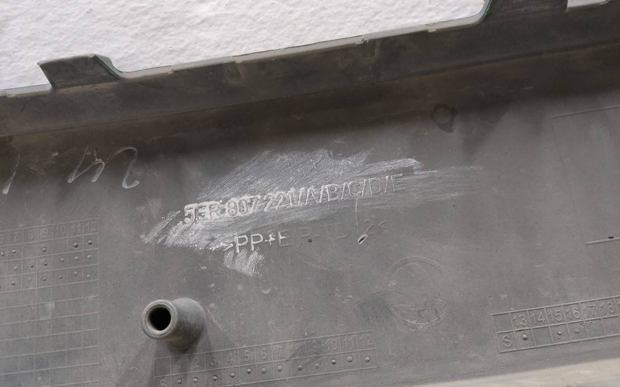 VAG, Бу оригинал\nНебольшая трещина на нижней перемычке, крепления целые, деформации нет\n5er807221\nБампер передний Skoda Octavia A8 5ER807221