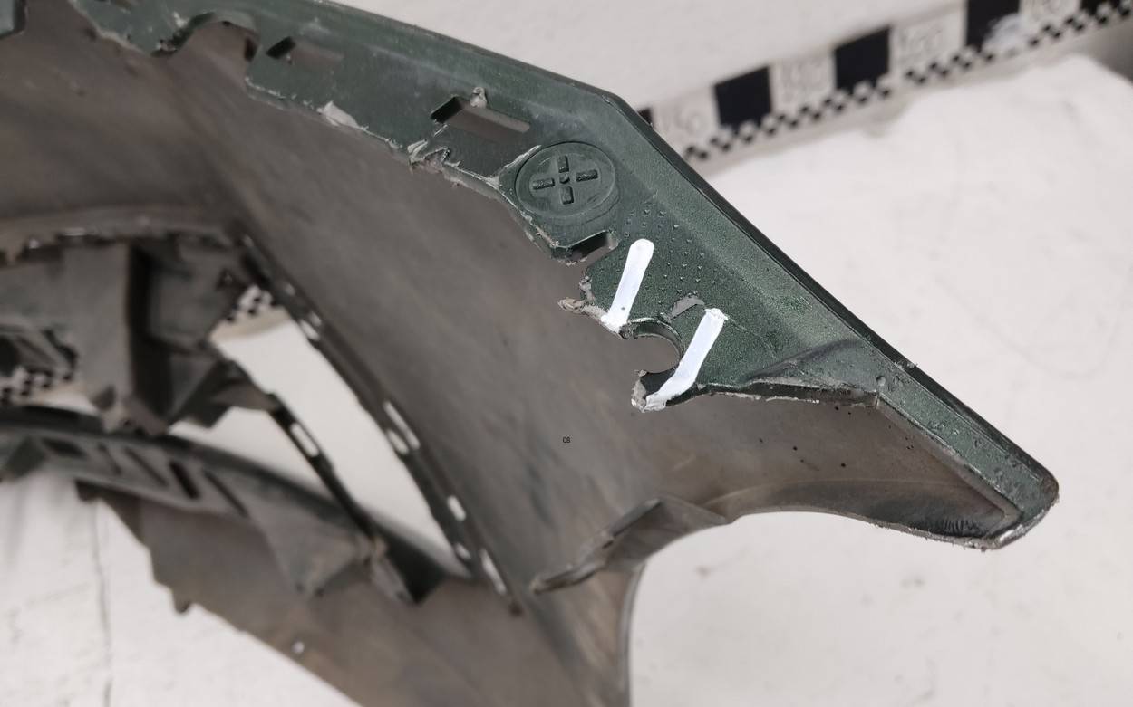 Состояние детали хорошее. Чёрного цвета, незначительные потертости. Незначительная деформация на кронштейне крепления к бамперу. Потребуется покраска или возможна установка в цвет
