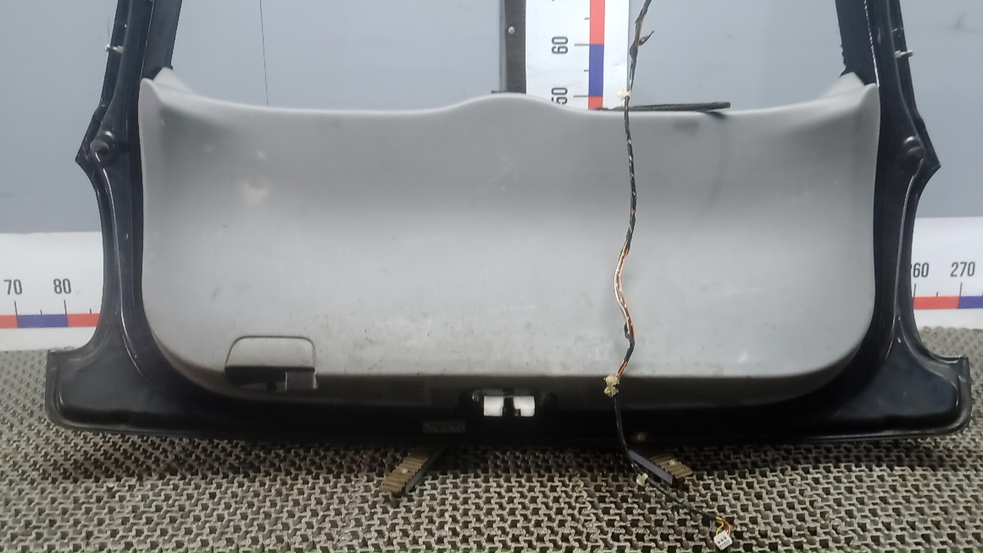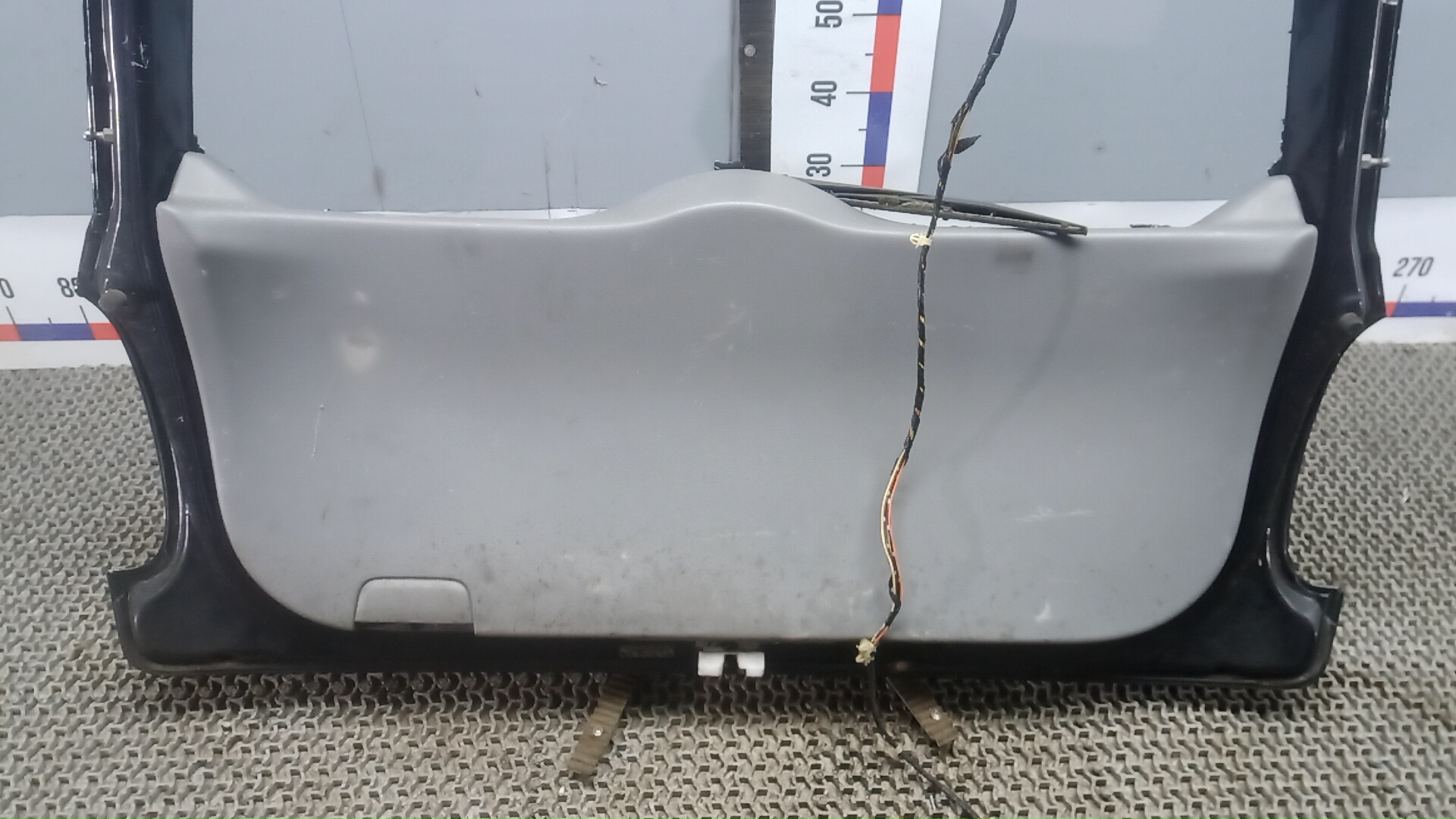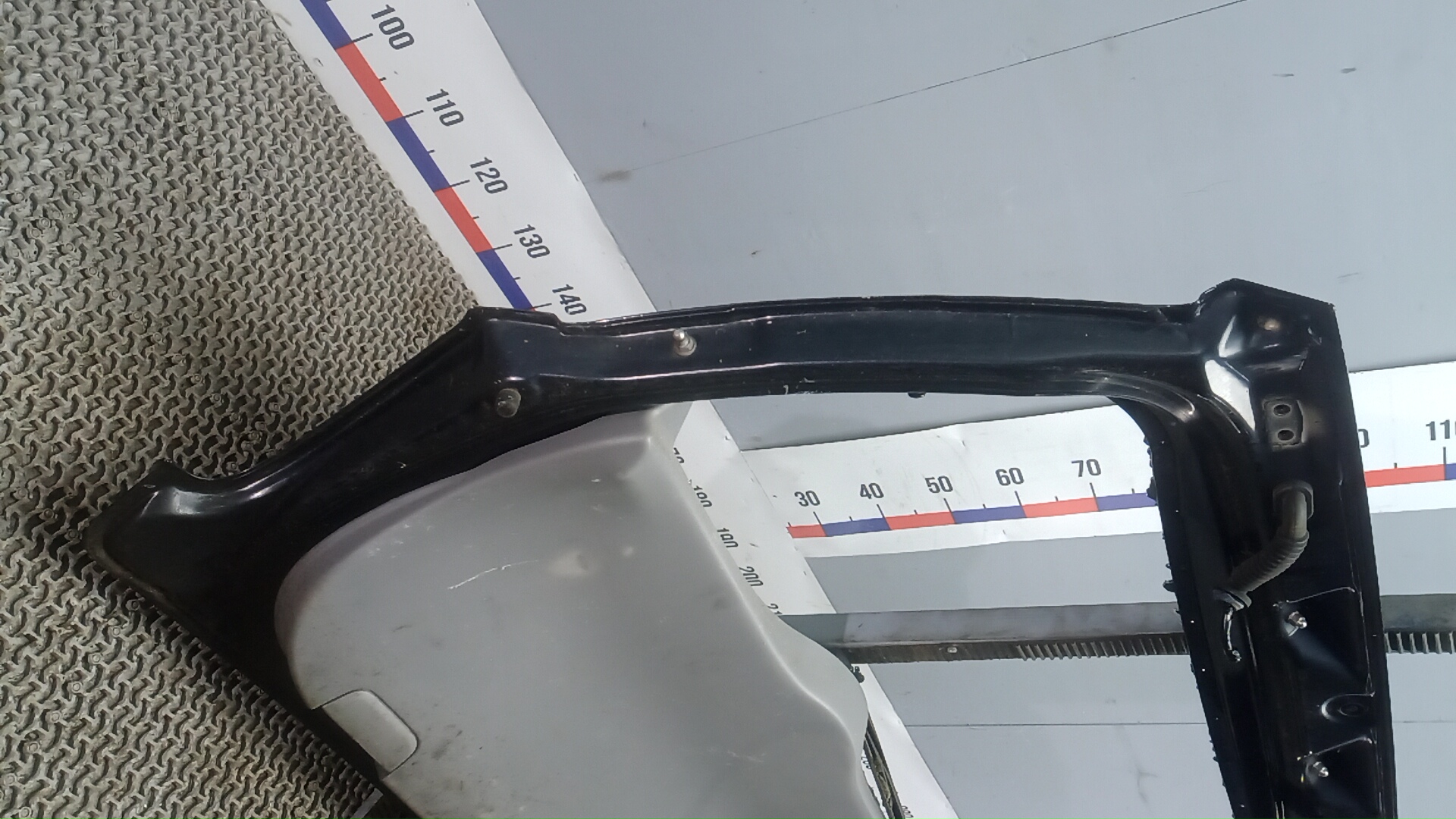 Состояние детали удовлетворительное. Чёрного цвета, потёртости, царапины. Вмятина в нижней части слева, замят внутренний каркас. Потребуется ремонт и покраска