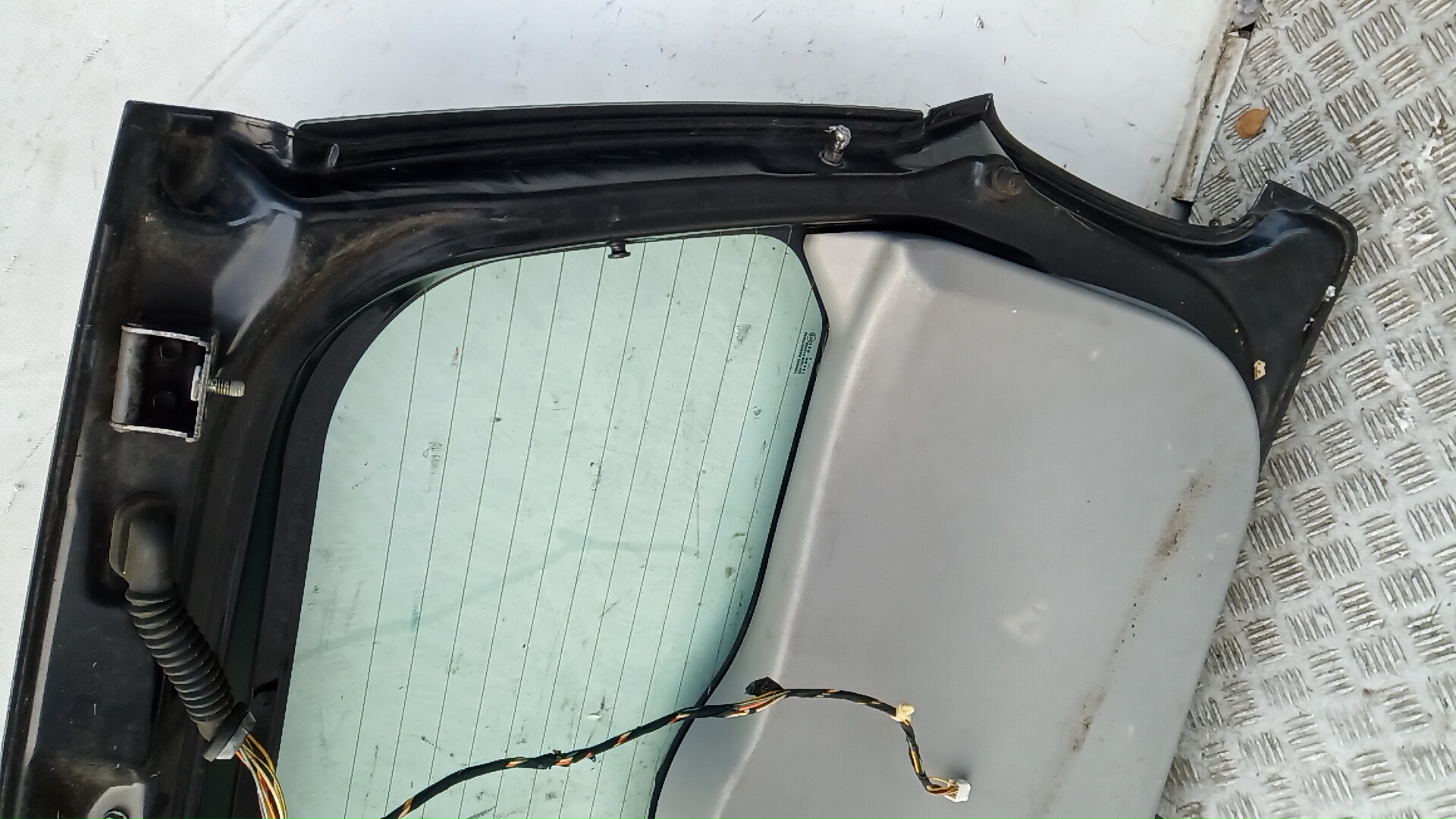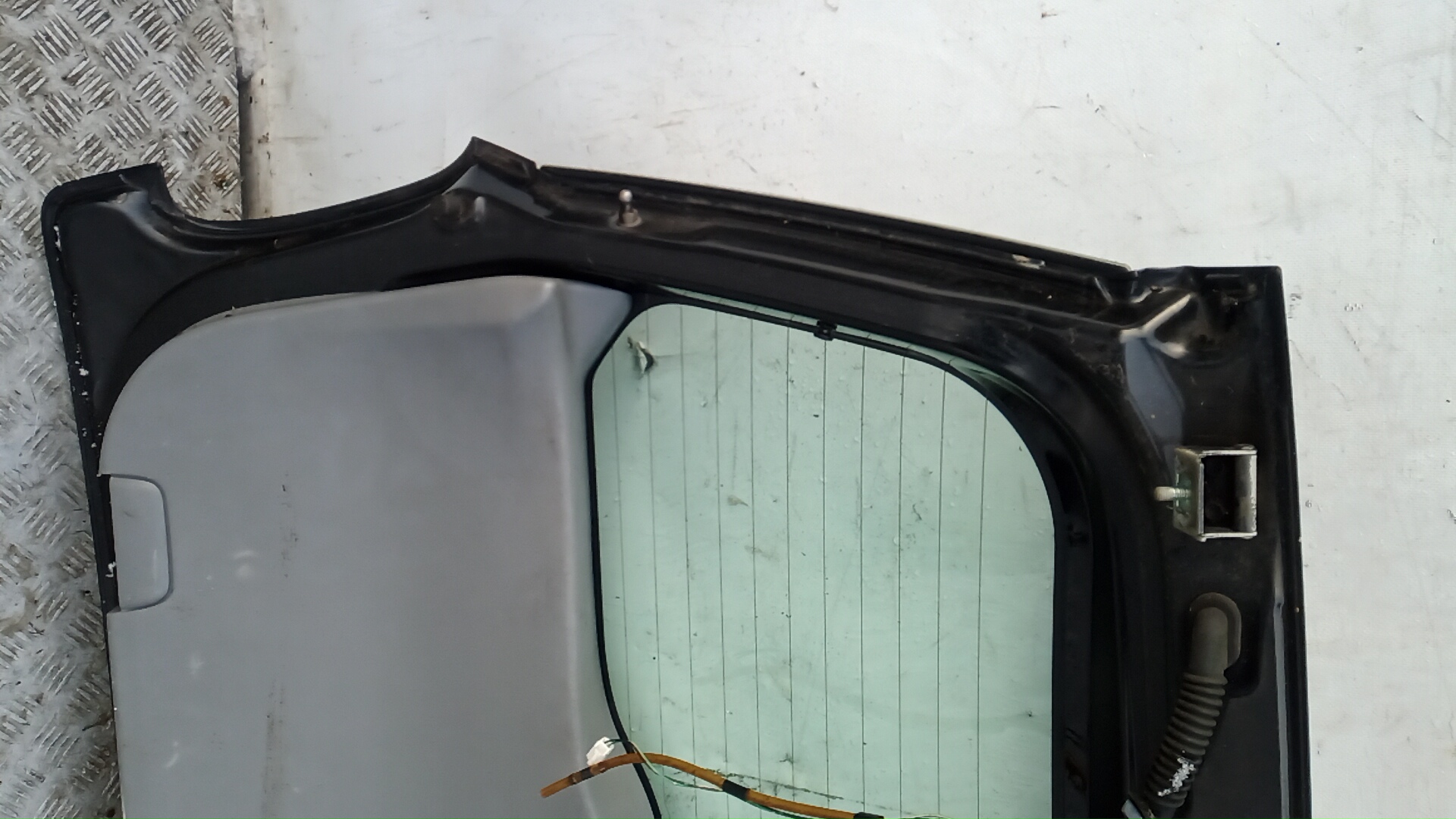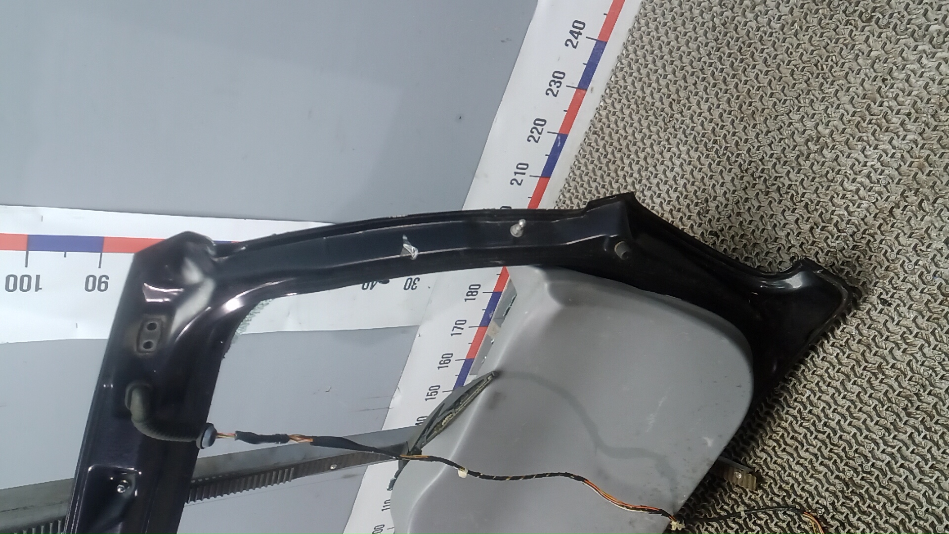 Состояние детали удовлетворительное. Чёрного цвета, потёртости, царапины. Вмятина в нижней части слева, замят внутренний каркас. Потребуется ремонт и покраска