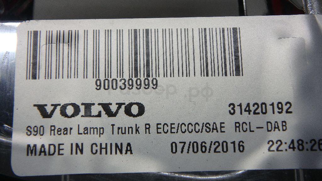 31420192 Фонарь задний внутренний правый для Volvo S90 2016>