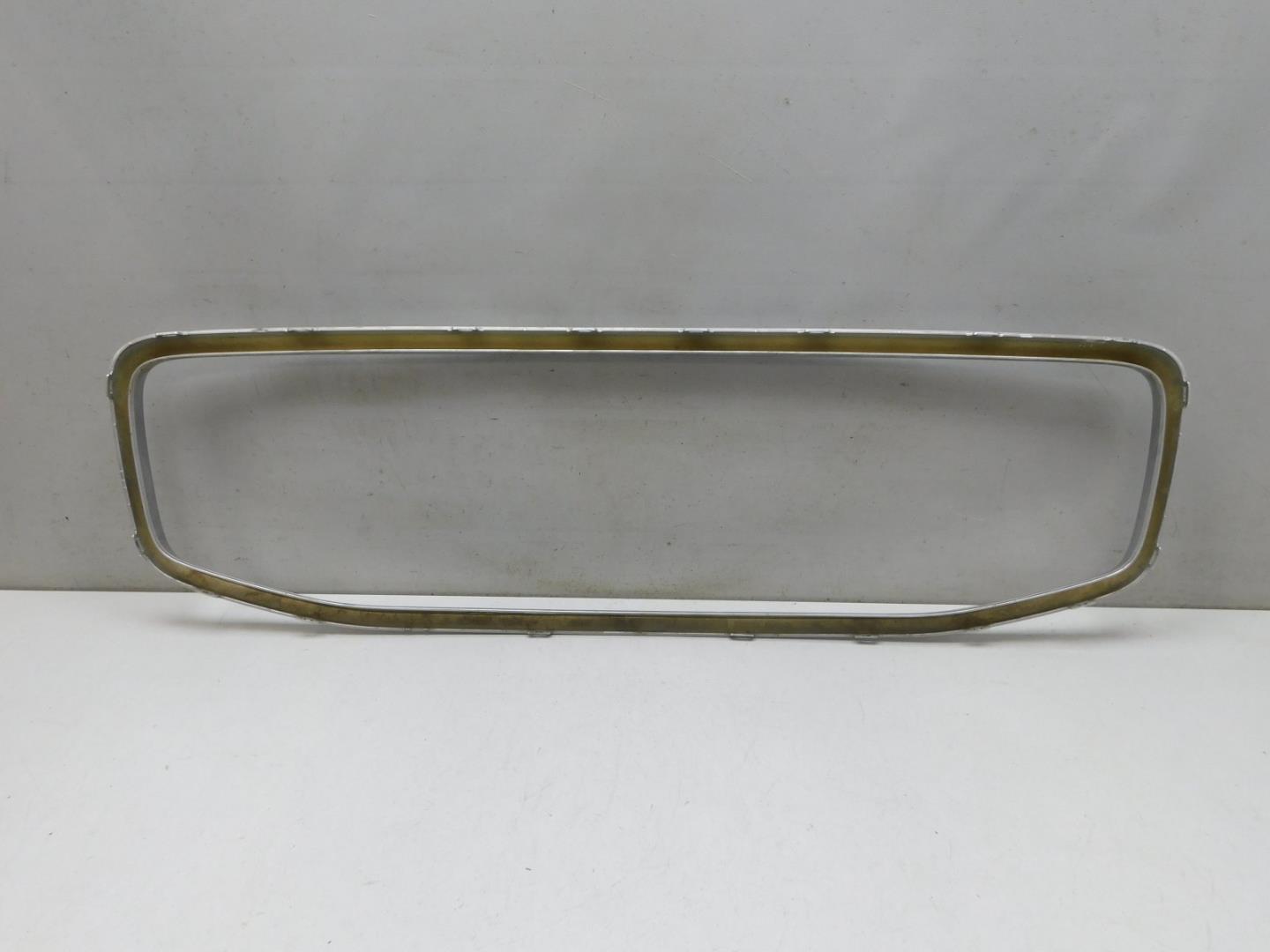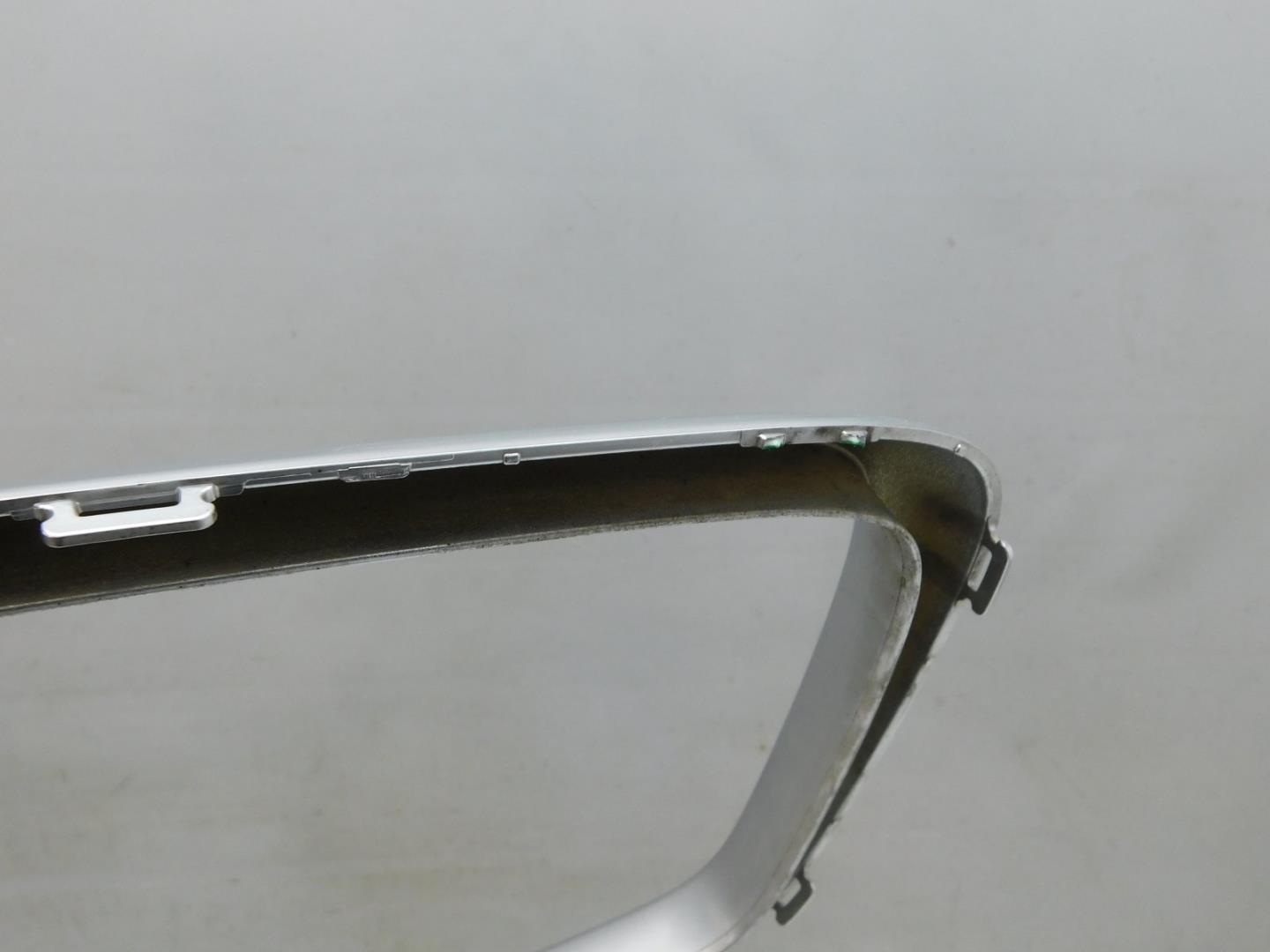 Состояние детали хорошее. Серого цвета, небольшая трещина по кромке проема под правую фару, вмятина. Накладка с царапинами. Дефект одного крепления. Потребуется ремонт