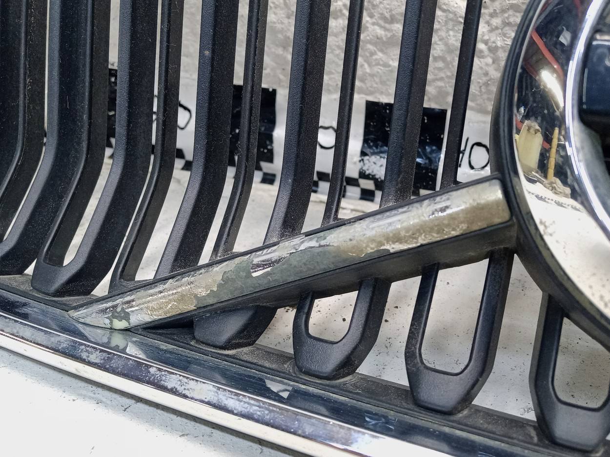 Состояние детали удовлетворительное. Следы эксплуатации, потёртости. Трещины на хроме и пластике решётки,крепления решётки целые, сломаны нижние крепления на хроме. Потребуется ремонт