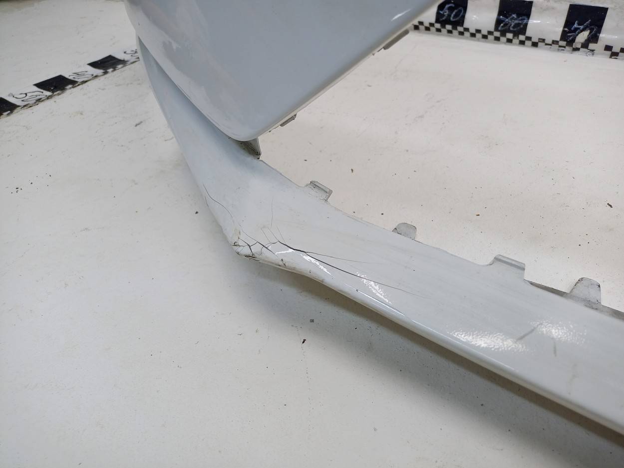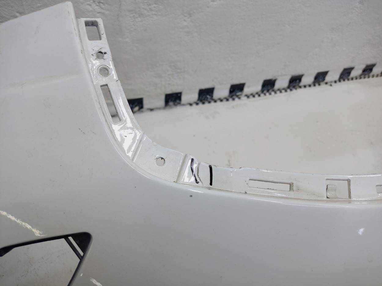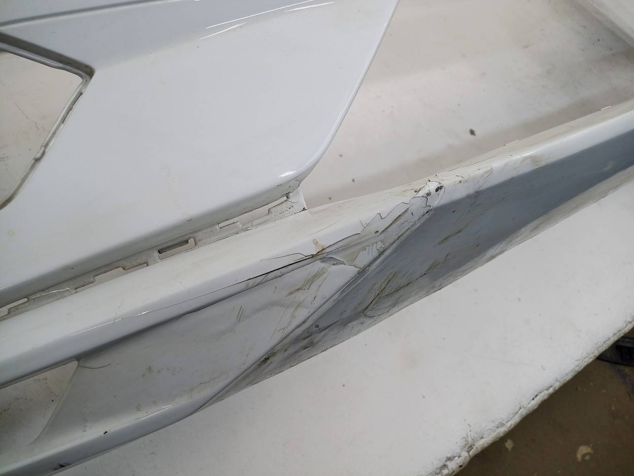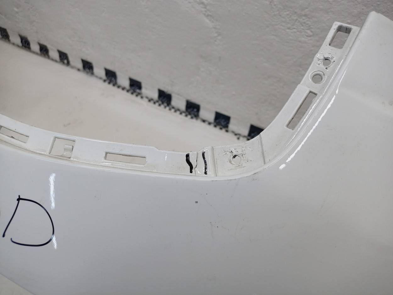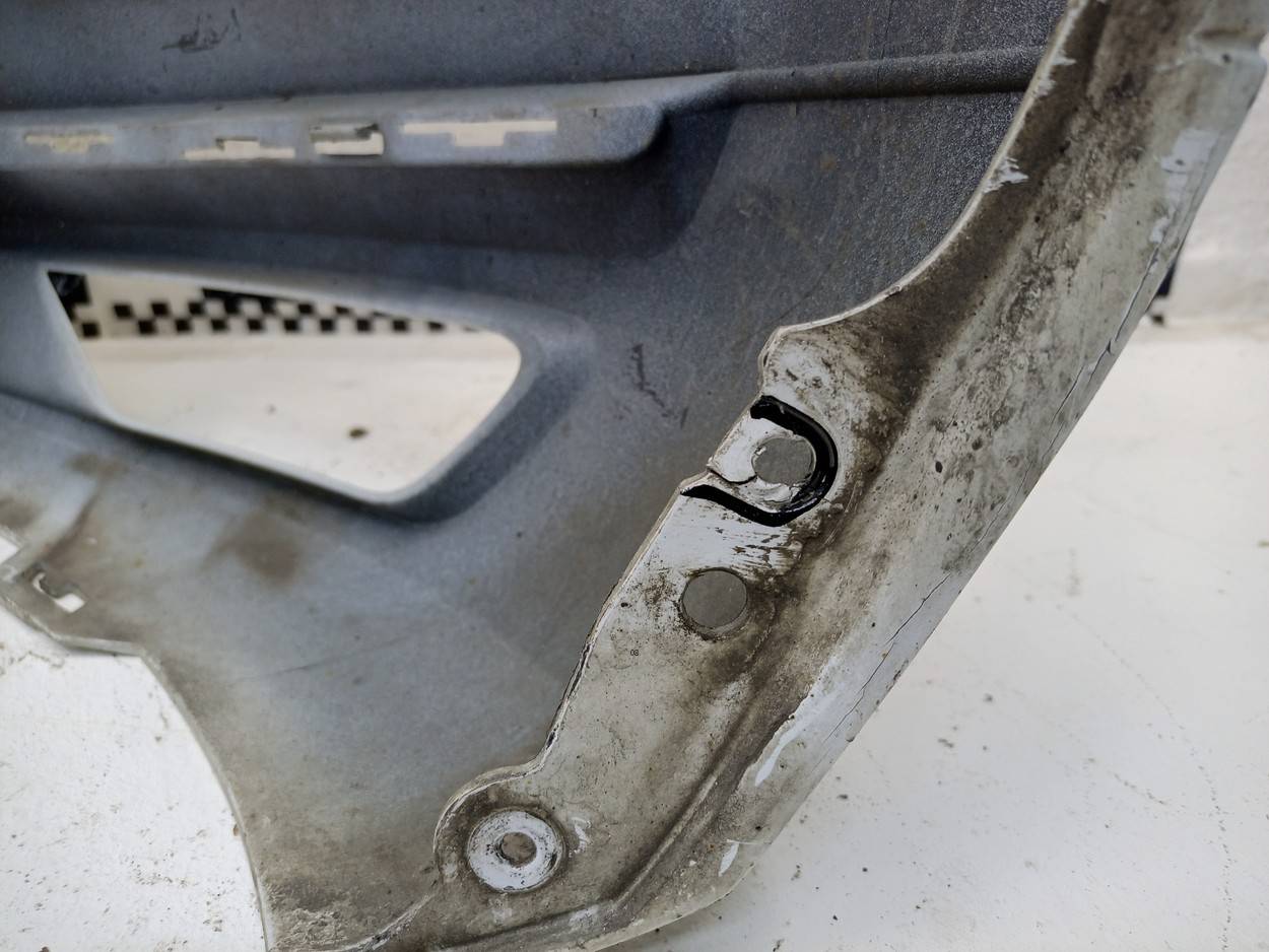 Состояние детали удовлетворительное. Серого цвета, потёртости. Отсутствуют направляющие форсунок омывателя, трещина с правой стороны снизу, отсутствует фрагмент крепления подкрылка в этом же месте, основные крепления целые. Потребуется ремонт и покраска